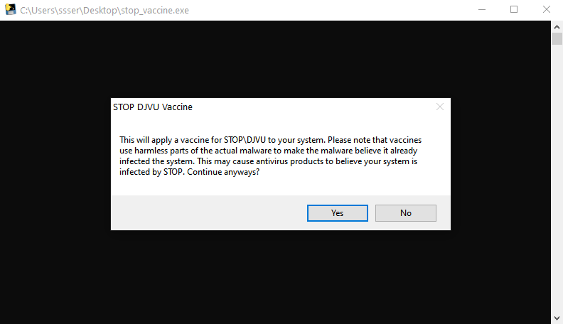 독일의 한 보안회사, G DATA에서 STOP 랜섬웨어의 암호화 동작을 방지하는 백신을 출시하였다. 해당 백신은 STOP 랜섬웨어의 악성동작 자체를 막지는 못하지만, 파일의 암호화 동작을 차단할 수 있다고 전해진다.