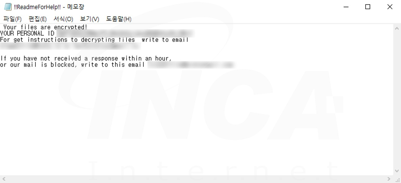 암호화를 하지 않고 "!!ReadmeForHelp!!.txt"라는 랜섬노트를 생성하는 "CruseFile" 랜섬웨어가 발견됐다.
