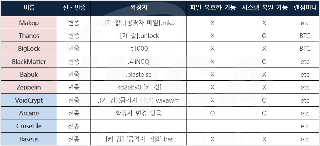 잉카인터넷 대응팀은 2021년 12월 03일부터 2021년 12월 09일까지 랜섬웨어 신•변종 및 이슈와 관련하여 대응을 진행하였으며, 신종 랜섬웨어는 "VoidCrypt" 외 3건, 변종 랜섬웨어는 "Makop" 외 5건이 발견됐다.