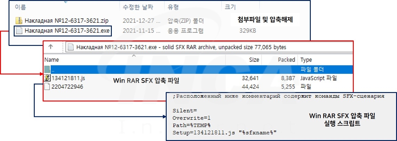 2. 사용자가 첨부 파일을 다운로드 한 후, 압축을 해제하면 WinRAR SFX 형태의 압축 파일을 생성한다.