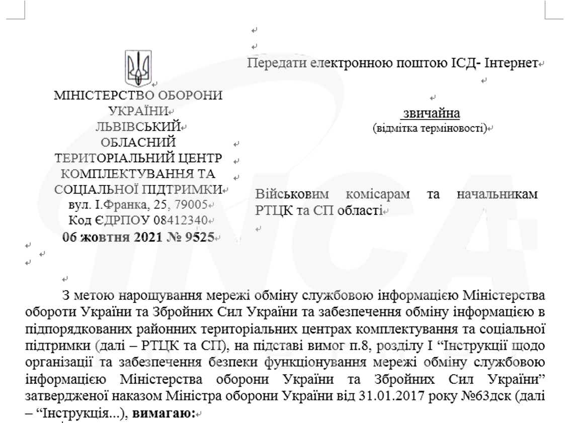 아래의 그림은 유포된 문서 내용의 일부로, 우크라이나 국방부에서 전송한 것으로 보이도록 우크라이나 국방부와 우크라이나 군대에 대한 내용이 포함되어있다.