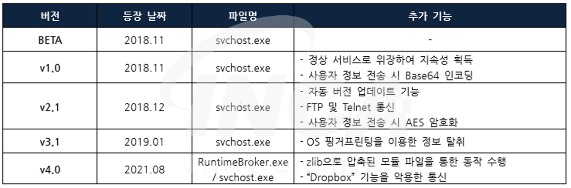 해당 해커 그룹은 Novel 이라는 RAT 악성코드를 사용하며, 공격 대상의 정보를 탈취하고 공격자의 명령을 전달받아 파일 다운로드 등의 추가 악성행위를 수행한다. 또한 Dropbox 를 C&C 서버로 활용하는 특징을 가지며, 2018년 최초 버전이 등장한 이후 현재 4.0 버전까지 업데이트 되었다. 관련된 자세한 정보는 아래의 링크에서 확인할 수 있다.