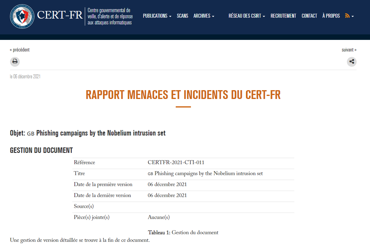 4분기에는 11월과 12월에 공격이 발견되었다. 먼저, 11월에는 프랑스 기업을 타겟으로 하는 피싱 캠페인으로 추정되는 공격이 수차례 발견되어 프랑스 정보국(ANSSI)에서 이와 관련된 자료를 발표하였다. 이 공격은 2021년 초에 시작된 것으로 알려졌다.