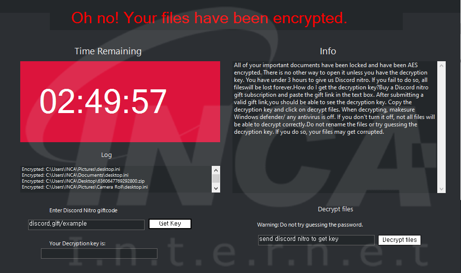 파일명에 ".givemenitro" 확장자를 추가하고 [그림 11]의 랜섬노트를 실행하는 "Nitro" 랜섬웨어의 변종이 발견됐다. 해당 랜섬웨어는 랜섬머니로 디스코드 니트로 정액권을 요구하는 특징이 있다.