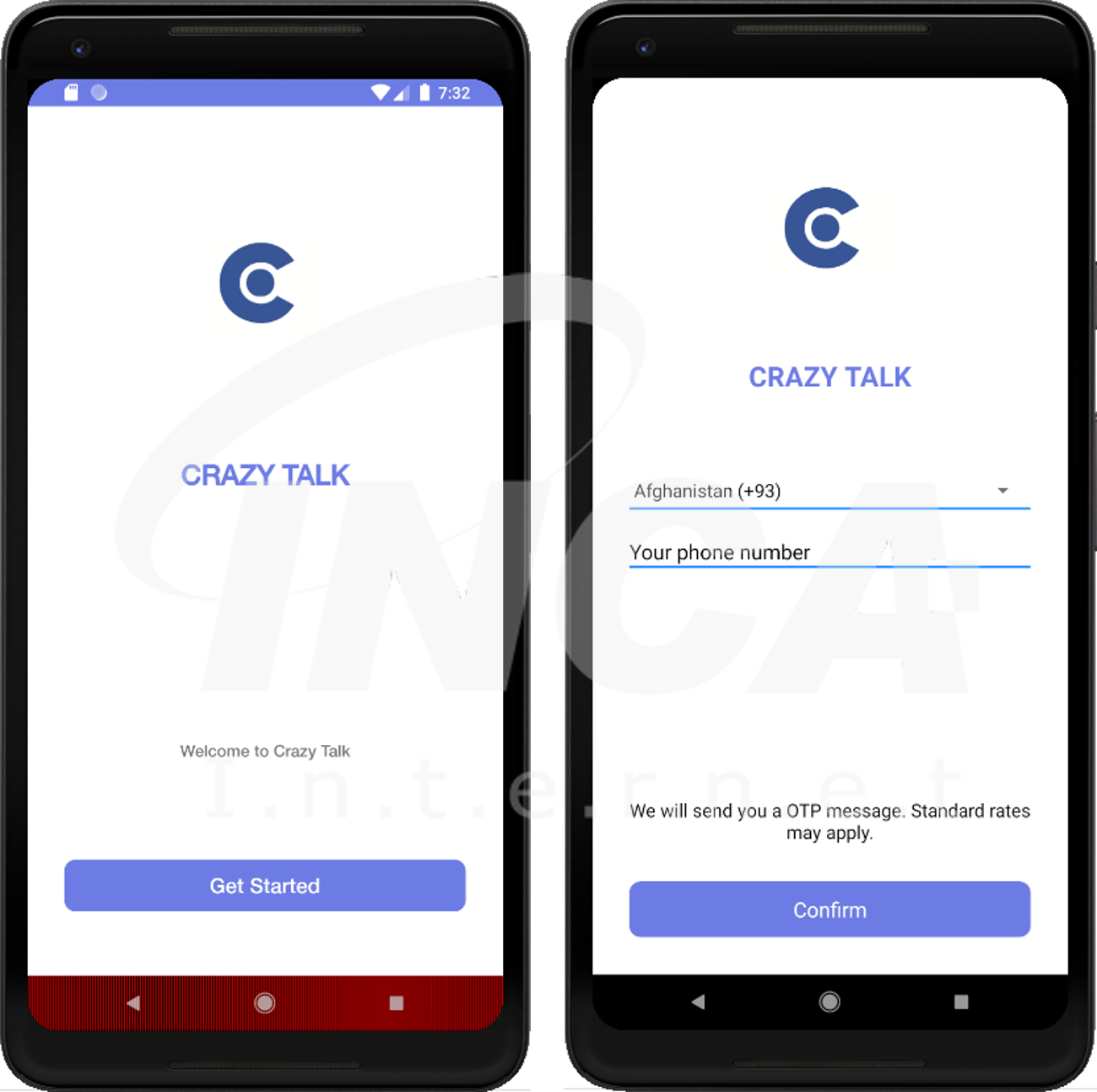 앱을 실행하면, 아래의 그림과 같이 전화번호 인증을 요구한다. 사용자가 입력한 번호가 정상적인 번호인지 OTP번호를 통해 확인한다.