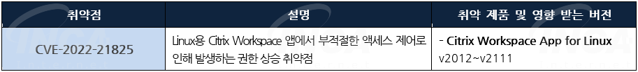 Citrix 사는 제품에서 발생하는 취약점에 대한 보안 업데이트를 발표하고, 관련 취약점을 해결하기 위해 최신 버전으로 업데이트할 것을 권고하였다.