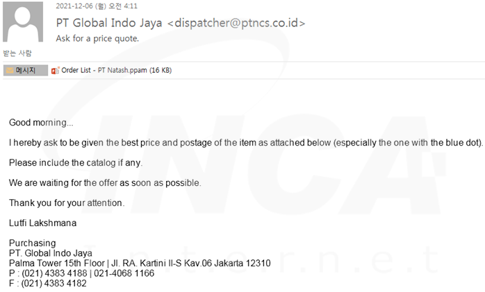 해당 캠페인에서 발견한 악성 문서를 실행하면 공격자가 운영하는 C&C 서버에서 "Warzon" 또는 "AgentTesla" 악성코드를 다운로드 및 실행한다.
