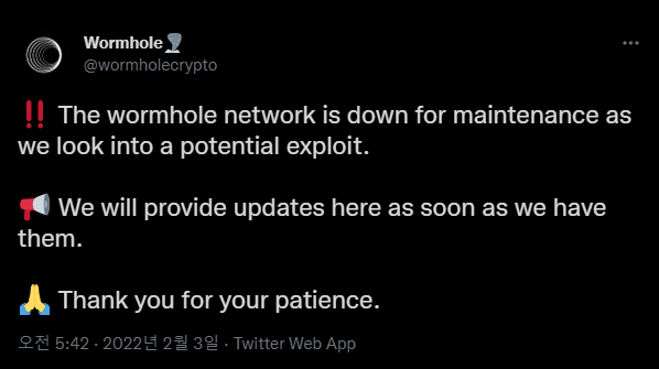 [2] Twitter (2022.02.03) – Wormhole 트위터 게시글