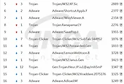 11월 한달 동안에는 Trojan과 Adware가 각각 45%, 44%로 가장 높은 진단율을 보였고, Trojan-Clicker와 Virus가 각각 3%, Abuse-Worry가 2%로 그 뒤를 따랐다.