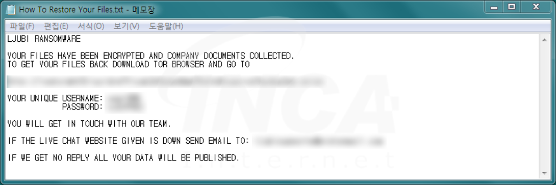 파일명에 “.ljubi" 확장자를 추가하고 "How To Restore Your Files.txt"라는 랜섬노트를 생성하는 "LJUBI" 랜섬웨어가 발견됐다. 해당 랜섬웨어는 시스템 복원을 무력화한다.
