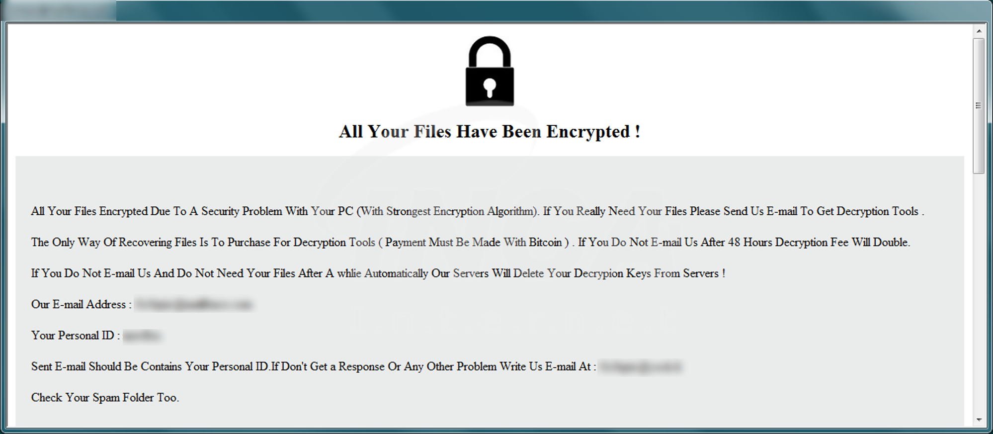 파일명에 ".[랜덤 문자열]" 확장자를 추가하고 "YOUR_FILES_ARE_ENCRYPTED.HTML"라는 랜섬노트를 생성하는 "SunCrypt" 랜섬웨어의 변종이 발견됐다.