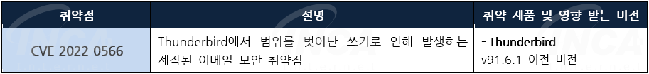 Mozilla 사는 제품에서 발생하는 취약점에 대한 보안 업데이트를 발표하고, 관련 취약점을 해결하기 위해 최신 버전으로 업데이트할 것을 권고하였다.