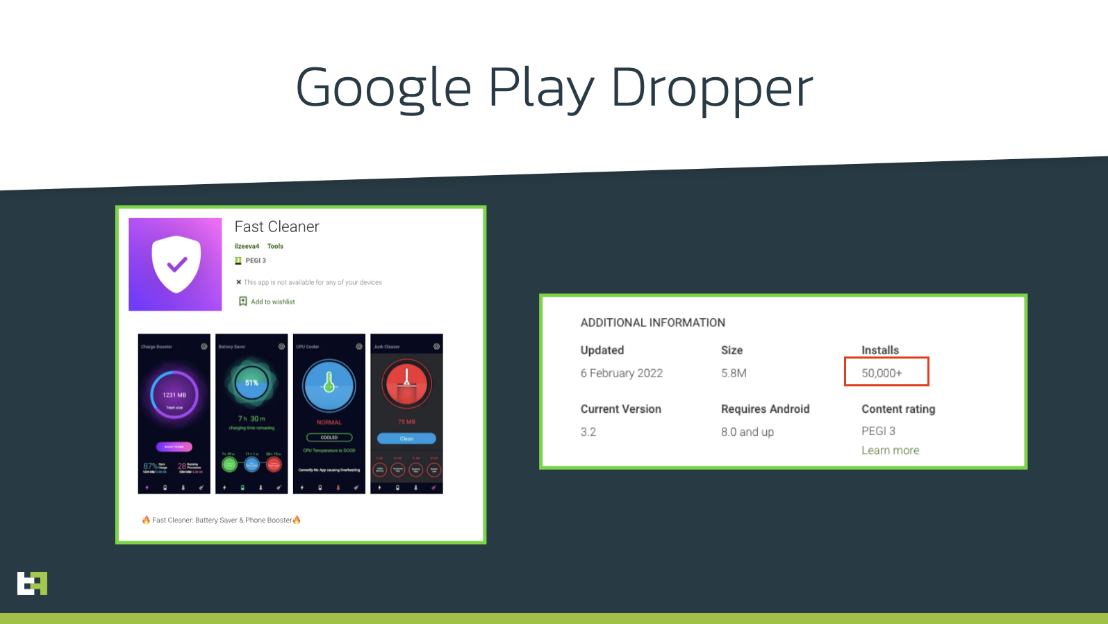 해당 업체에 따르면 "Xenomorph"가 성능 향상 앱 등의 정상 앱으로 위장해 Play Store에서 유포된다고 알려졌다.