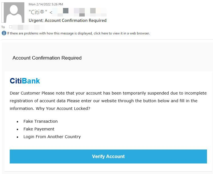 최근 미국의 은행 Citibank를 대상으로 하는 피싱 캠페인이 발견됐다.