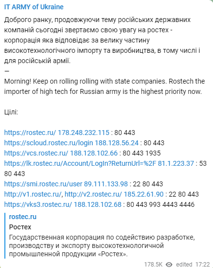 [1] Bleepingcomputer (2022.03.11) - Russian defense firm Rostec shuts down website after DDoS attack