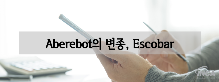 지난 3월 초, Escobar 앱이 등장하였다. 해당 악성 앱은 에뮬레이터를 탐지하고, 저장된 각종 정보를 탈취하며 카메라 사진 촬영 및 녹화 등의 악성 동작을 수행한다. 그 외에도 원격지와 연결하여 명령을 수행하는 Bot 동작 등을 수행한다. 호주 기반의 사이버 보안 회사인 Cyble에 따르면, 해당 앱은 Aberebot의 변종으로 전해지지만 악성 동작 특징 및 코드의 유사점을 찾아보긴 어렵다.