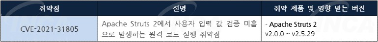 - Apache Struts 2 v2.5.30 및 이후 버전
