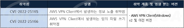 AWS 사는 제품에서 발생하는 취약점에 대한 보안 업데이트를 발표하고, 관련 취약점을 해결하기 위해 최신 버전으로 업데이트할 것을 권고하였다.