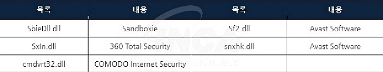 “BlackGuard” 악성코드를 실행하면 먼저, [표 1]의 목록과 같이 백신 프로그램 및 가상환경 관련 프로세스를 확인한 후 종료한다.