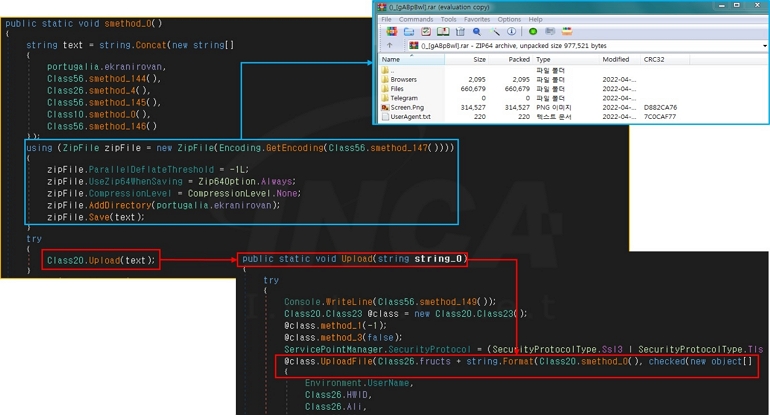 정보 수집을 완료하면 수집한 파일을 압축해 저장한 후, 공격자가 운영하는 C&C 서버로 업로드한다.