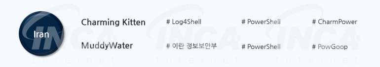 1분기에는 Charming Kitten 해커 그룹이 Log4Shell 취약점을 이용하였으며, MuddyWater 해커 그룹이 사용하는 Powershell 기반 악성코드의 정보가 공개되었다.
