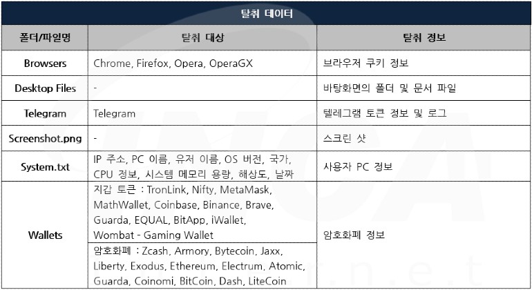 해당 폴더에 저장된 탈취 정보는 [표 1]과 같다.