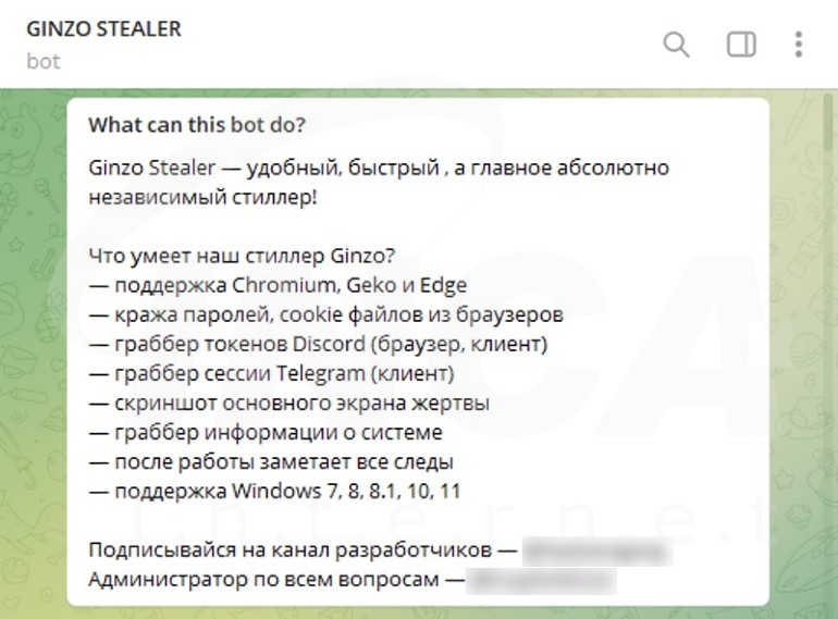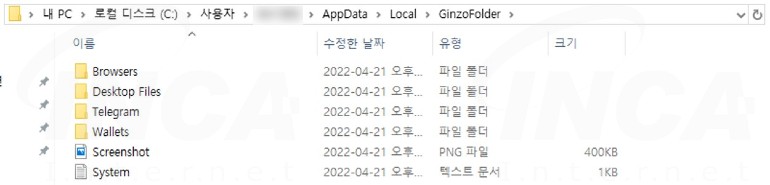 해당 해킹 그룹의 인포 스틸러 “GinzoStealer”는 무료로 배포 중이며 고객이 텔레그램 계정을 통해 탈취한 정보를 받을 수 있다. “GinzoStealer”는 유튜브를 이용해 게임 치트 툴, 불법 복제 소프트웨어로 위장하여 유포되고 있고, 감염되면 사용자의 PC 정보, 암호화폐 지갑 정보 및 브라우저 쿠키 정보를 탈취한다. 해당 악성코드는 더 강력한 인포 스틸러와 불법 암호화폐 채굴 프로그램을 다운로드하여 추가적인 이득을 취한다.
