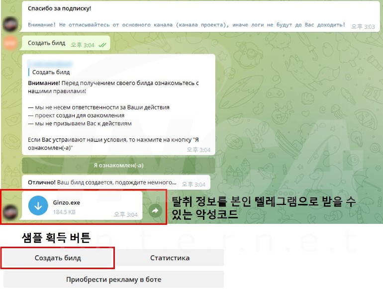 “GinzoStealer” 정보 탈취 악성코드는 텔레그램을 통해 무료로 배포되며 누구나 쉽게 샘플을 다운로드 할 수 있다.