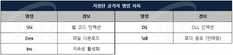 아래는 공격자의 명령에 따른 동작 정보이다.