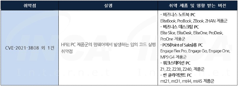 HP社는 자사 제품에서 발생하는 취약점을 해결한 업데이트 발표하고, 관련 취약점을 해결하기 위해 최신 버전으로 업데이트할 것을 권고하였다.