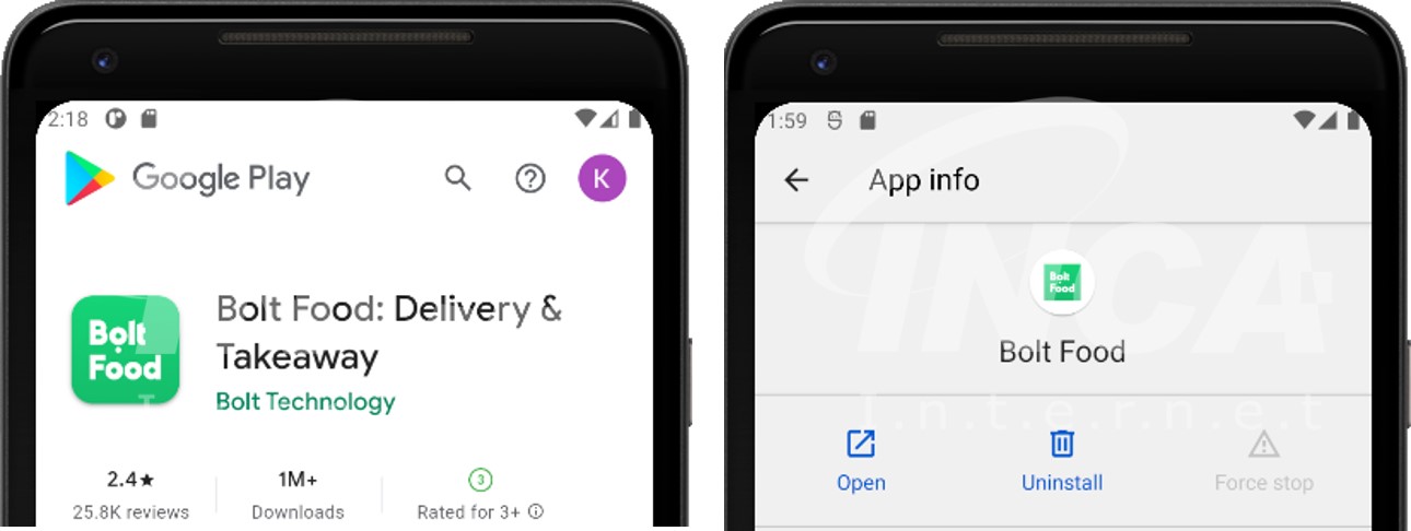 ERMAC 2.0‘Bolt Food’라는 배달 플랫폼 앱을 위장하였으며, 정상 사이트와 유사한 도메인의 웹 사이트에서 유포되었다. 유포된 앱은 정상 앱의 아이콘과 동일하여 사용자를 속인다.