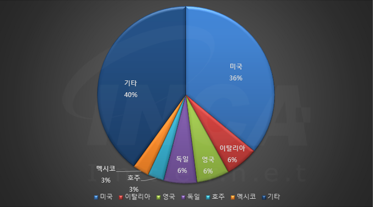 2022년 5월(5월 1일 ~ 5월 31일)에 발생한 데이터 유출 건을 국가별로 비교하였을 때 미국이 36%로 가장 높은 비중을 차지했고, 이탈리아, 영국 및 독일이 각각 6%, 호주 및 멕시코가 3%로 그 뒤를 따랐다.