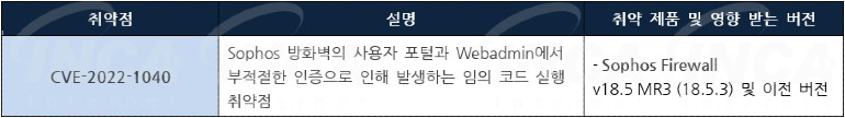 Sophos 사는 제품에서 발생하는 취약점에 대한 보안 업데이트를 발표하고, 관련 취약점을 해결하기 위해 최신 버전으로 업데이트할 것을 권고하였다.