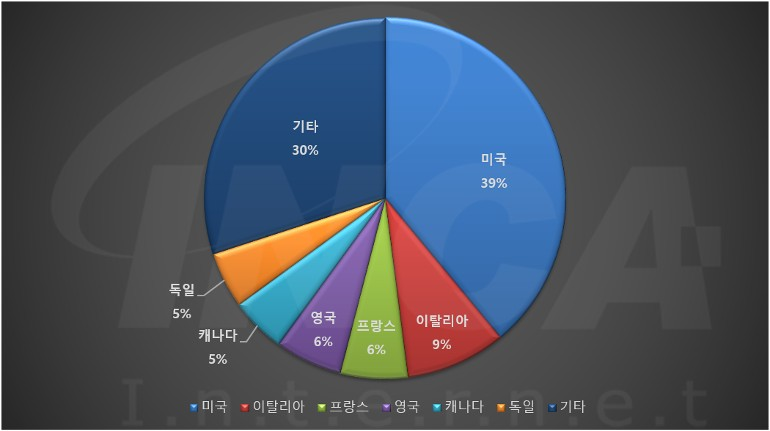 2022년 6월(6월 1일 ~ 6월 30일)에 발생한 데이터 유출 건을 국가별로 비교하였을 때 미국이 39%로 가장 높은 비중을 차지했고, 이탈리아가 9%, 프랑스 및 영국이 각각 6%, 캐나다 및 독일이 5%로 그 뒤를 따랐다.
