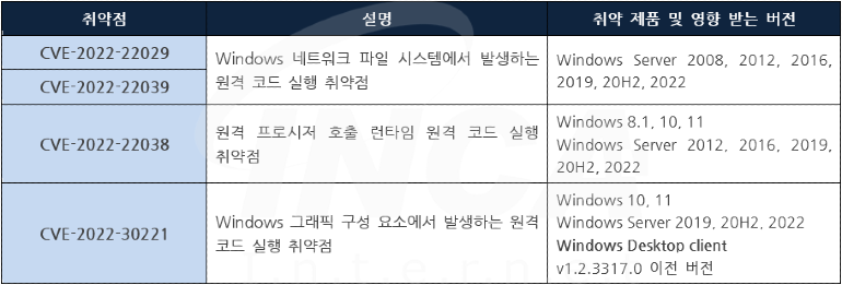 Microsoft 사는 제품에서 발생하는 취약점에 대한 보안 업데이트를 발표하고, 관련 취약점을 해결하기 위해 최신 버전으로 업데이트할 것을 권고하였다.