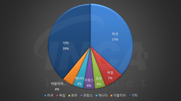 2022년 7월(7월 1일 ~ 7월 31일)에 발생한 데이터 유출 건을 국가별로 비교하였을 때 미국이 37%로 가장 높은 비중을 차지했고, 독일이 7%, 호주, 프랑스, 캐나다 및 이탈리아가 각각 4%로 그 뒤를 따랐다.