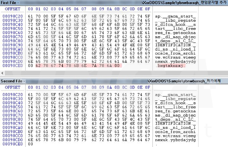 공격자로부터 전달되는 명령, C&C 서버 주소 등 악성 행위에 필요한 데이터를 XOR 연산으로 디코딩하여 사용하는 특징을 가져 “XorDDoS” 라는 이름으로 명명 되었으며, IoT 장비 혹은 리눅스 서버를 감염하기 위해 ARM, x86 및 x64와 같은 다양한 Linux 아키텍처 버전으로 제작되었다.