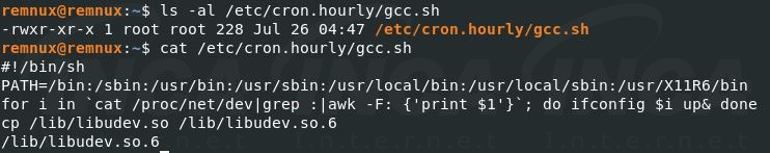 또한, ‘/etc/cron.hourly.gcc.sh’ 파일 명으로 스크립트를 생성한 뒤 crontab 에 추가하여 3분마다 악성코드가 실행되도록 설정한다.