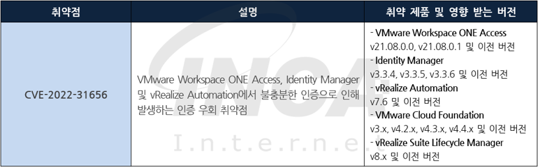 VMware 사는 제품에서 발생하는 취약점에 대한 보안 업데이트를 발표하고, 관련 취약점을 해결하기 위해 최신 버전으로 업데이트할 것을 권고하였다.