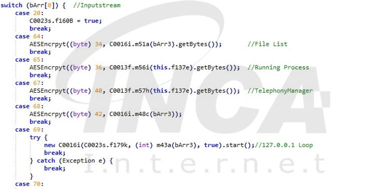 원격지와 통신하여 명령을 받으면, SMS 메시지 정보, 단말기 정보 등을 탈취할 수 있다. 그 외에도 카메라에 접근하여 사용자 몰래 사진을 찍는 등의 동작을 수행한다.
