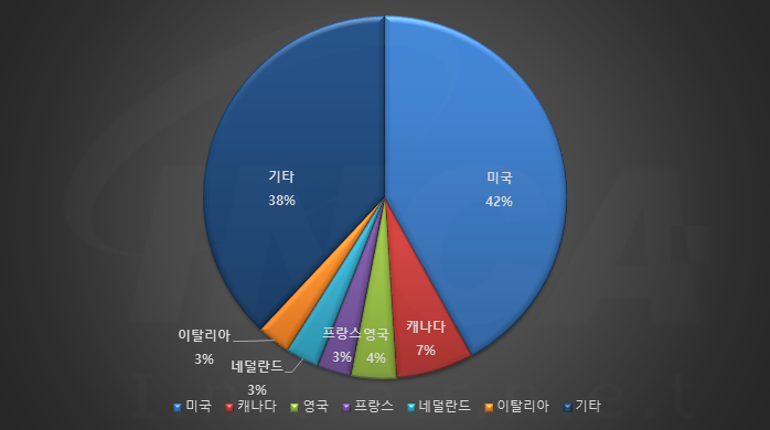 2022년 8월(8월 1일 ~ 8월 31일)에 발생한 데이터 유출 건을 국가별로 비교하였을 때 미국이 42%로 가장 높은 비중을 차지했고, 캐나다가 7%, 영국이 4%, 프랑스, 네덜란드 및 이탈리아가 각각 3%로 그 뒤를 따랐다.