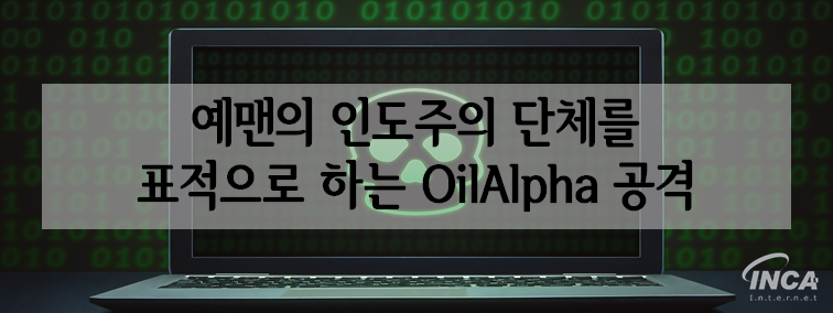 보안 업체 Recorded Future에 따르면, OilAlpha라고 불리는 위협 그룹이 CARE International, 노르웨이 난민 위원회(NRC), 사우디 아라비아 킹 살만 인도주의 지원 및 구호 센터를 대상으로 악성 안드로이드 설치 파일을 배포했다고 언급했다. 해당 악성 앱은 SpyNote 혹은 SpyMax라고도 불리는 트로이 목마를 설치하여 사용자의 카메라, 오디오 및 연락처 등에 대한 액세스를 포함한 권한을 요청해 민감 정보를 수집하려고 시도한다. 또한, 해당 단체들의 로그인 페이지를 사칭해 사용자를 리디렉션하고, 자격 증명을 입력하게 한 후 로그인 정보를 수집하는 등 사용자의 데이터를 탈취한다.