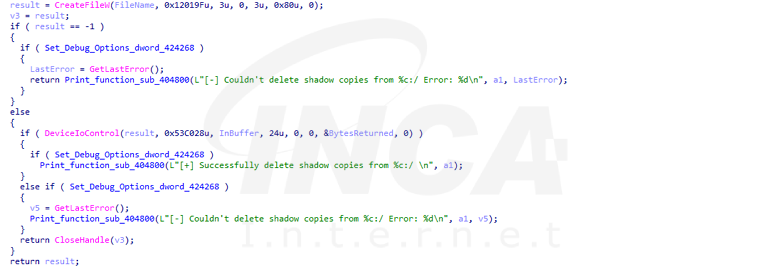 드라이버에 I/O 요청을 할 때는 0x53C028 제어 코드를 DeviceIoControl API로 전달한다. 이 값은 마이크로소프트의 기술 문서에 작성되지 않은 값이지만, 볼륨 섀도우 복사본의 최대 저장 공간 크기를 변경하는 데 사용된다.