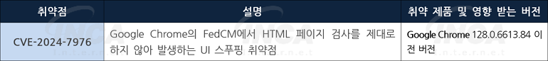 Google 사는 제품에서 발생하는 취약점에 대한 보안 업데이트를 발표하고, 관련 취약점을 해결하기 위해 최신 버전으로 업데이트할 것을 권고하였다.