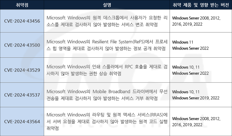 Microsoft 사는 제품에서 발생하는 취약점에 대한 보안 업데이트를 발표하고, 관련 취약점을 해결하기 위해 최신 버전으로 업데이트할 것을 권고하였다.