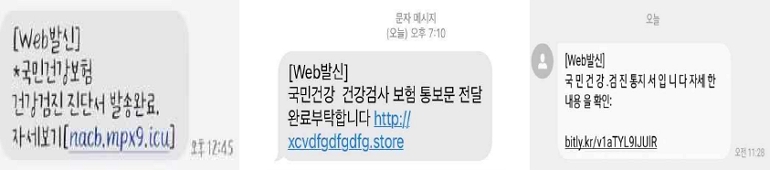 공단 측은 고객센터 번호(1577-1000)를 도용하거나 공단을 사칭한 피싱 문자가 연말에 증가한다고 언급했다. 피싱 문자는 주로 건강검진 대상자 또는 검진결과 안내를 빌미로 문자에 첨부된 악성 링크에 접속하도록 유도한다고 전했다. 사용자가 해당 링크에 접속해 모바일 기기가 감염되면서 개인정보와 금융 정보가 유출된 사례가 있다고 설명했다. 이 외에도 피싱 메일의 피해 사례도 발견됐다고 덧붙였다.