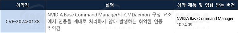 NVIDIA 사는 제품에서 발생하는 취약점에 대한 보안 업데이트를 발표하고, 관련 취약점을 해결하기 위해 최신 버전으로 업데이트할 것을 권고하였다.