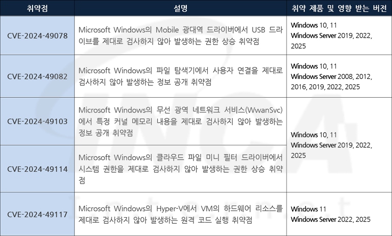 | Microsoft 11월 정기 보안 업데이트 권고 (0) | 2024.11.22 |