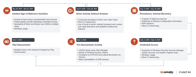 보안 업체 Palo Alto Networks의 Unit 42에서 북한 정부의 지원을 받는 것으로 알려진 해커그룹이 랜섬웨어 조직과 연관된 공격 사례를 발견했다. Unit 42 측은 해당 해커그룹에서 공격한 시스템이 약 3개월 후에 Play 랜섬웨어에 감염됐다고 전했다.